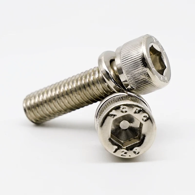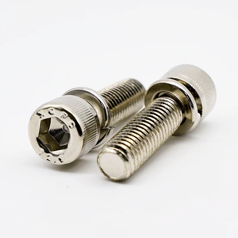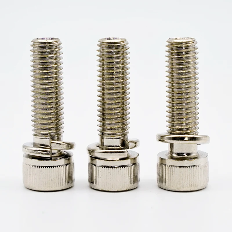 Sur les chaînes d'assemblage automatisées, l'utilisation de vis pré-assemblées peut améliorer considérablement l'efficacité de la production, économiser des heures de travail et réduire les taux d'erreur. Nos vis à tête cylindrique à six pans creux nickelées à haute résistance avec rondelles élastiques subissent un traitement d'élimination de l'hydrogène, éliminant ainsi les problèmes de fragilisation par l'hydrogène. Parce qu'ils sont pré-assemblés puis galvanisés, la vis, les rondelles élastiques et leurs points de contact sont tous recouverts par le placage, formant un tout unifié. Le placage en nickel offre une bonne résistance à la rouille et à la corrosion, avec un aspect uniforme et brillant. Lorsque les deux pièces à assembler sont toutes deux des matériaux durs et plats qui ne sont pas sensibles aux dommages de surface, les vis à tête cylindrique à six pans creux nickelées avec rondelles à ressort empêchent efficacement le desserrage et améliorent l'esthétique. Dans les scénarios nécessitant des mesures anti-desserrage de base et une priorité à l’apparence, il fournit une solution intégrée.
